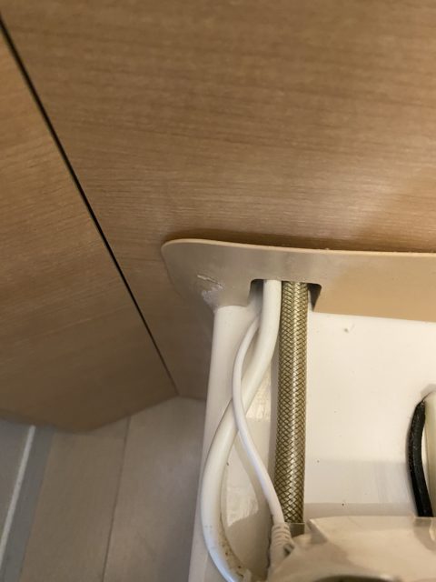 問題は、そのモーターからカウンター下の小さな穴を通して便座までつながっている白いケーブルです。