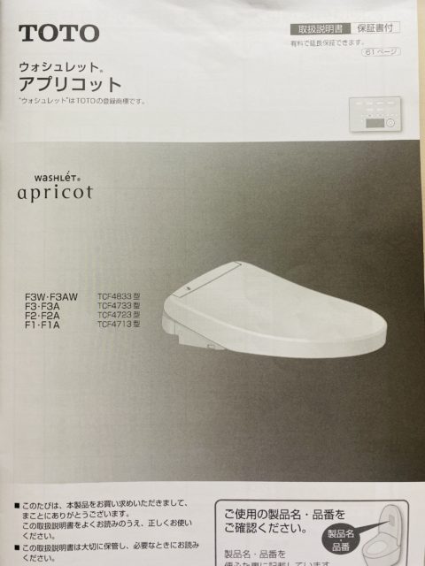 ちなみに、うちのトイレは便座がTOTOのアプリコット、カウンター等はレストパルのシステムなのですが、型番は非常にたくさんあって、特定するのが難しいです。