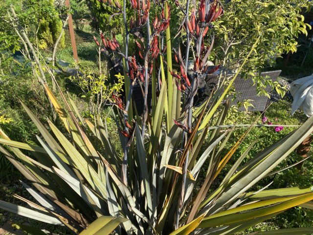 庭にある40年に1度しか花が咲かない植物「ニューサイラン」がつぼみをつけました。
